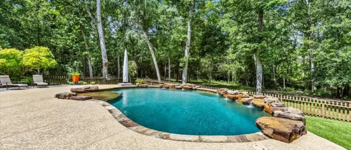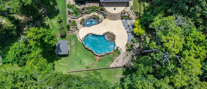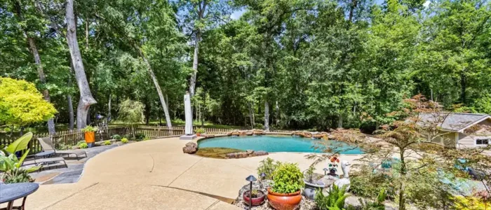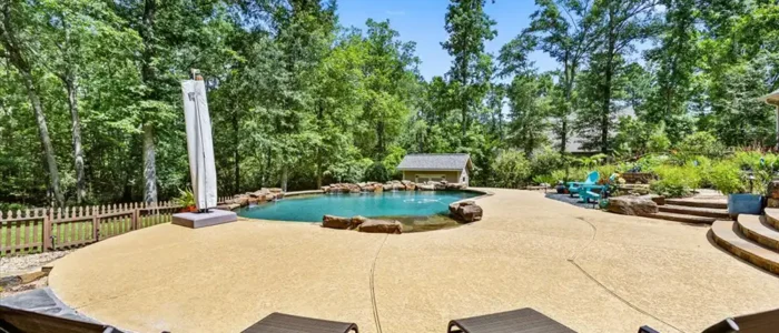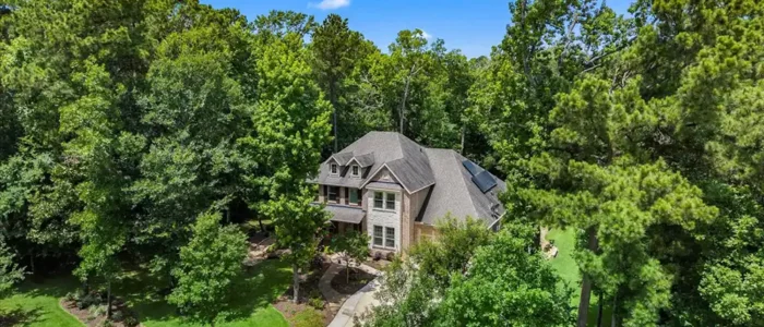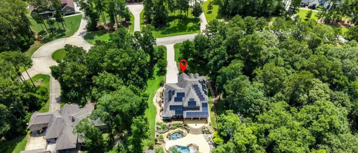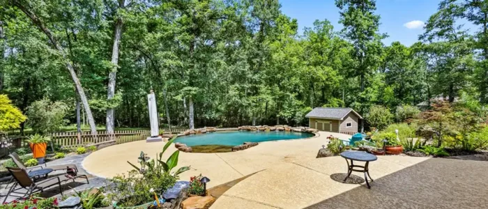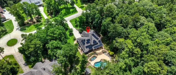 Discover unparalleled privacy at Longmire Creek Estates, perfectly situated on over an acre of beautifully manicured property. Step outside to your own private resort, featuring luscious landscaping, a sparkling pool, and an expansive multi-tier patio, perfect for everything from quiet mornings to grand entertaining. Location is key, and this home delivers- just minutes from I-45,offering effortless commutes and quick access to both Conroe and The Woodlands. This property is incredibly efficient and is not only equipped with solar panels for energy savings, a whole-home generator ensuring uninterrupted power, but also a whole-home water filtration system. Inside, you’ll find a spacious and versatile layout with 5 bedrooms and 4 bathrooms. Thoughtfully designed it includes two bedrooms and two full bathrooms conveniently located on the main floor, making it an ideal setup for multi-generational living or hosting guests with ease.3 car tandem garage offers space for parking, or even a golf simulator!